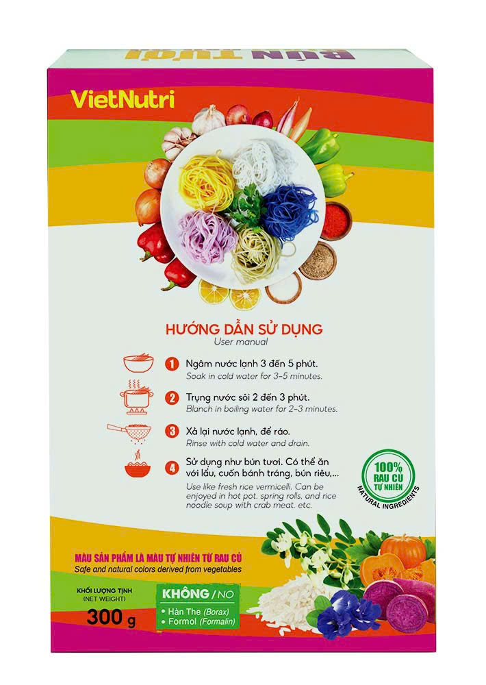 Hương vị và màu sắc tự nhiên: Mỗi sợi bún mang một màu sắc rực rỡ tự nhiên từ rau củ quả, nói KHÔNG với sử dụng phẩm màu.
