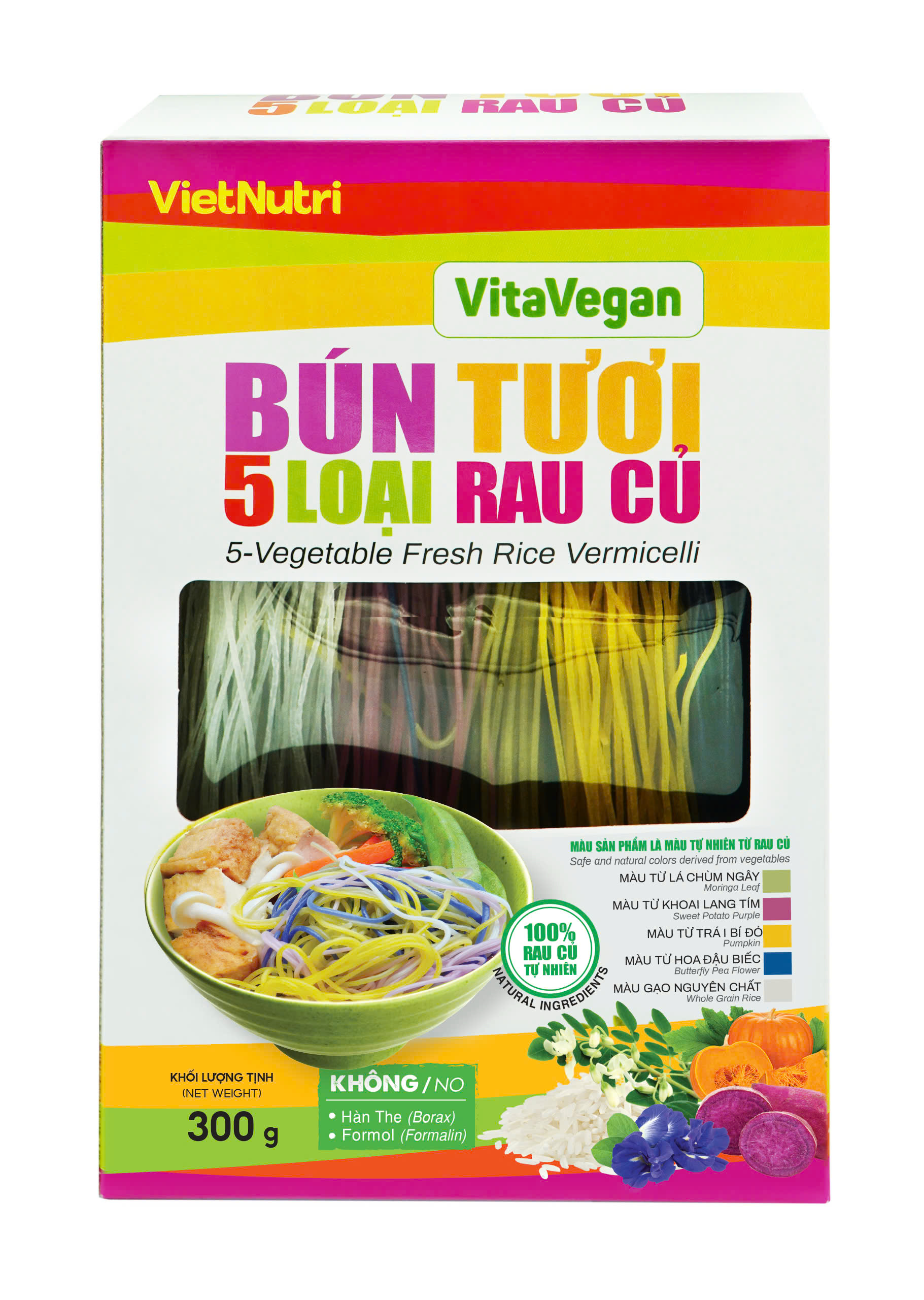 Lợi ích cho sức khỏe: Không giống các loại bún bán trên thị trường, bún rau củ VitaVegan KHÔNG chứa hàn the và Formol, không chứa chất bảo quản, chất tẩy trắng nên khách hàng có thể hoàn toàn yên tâm.