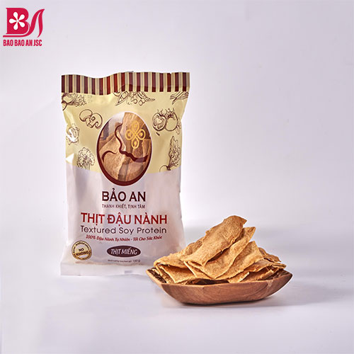 Thịt chay dạng miếng từ đậu nành của Công ty Cổ phần Thực dưỡng Bảo Bảo An là món ăn giàu dinh dưỡng được chế biến từ 100% đậu nành nguyên chất mang đến những món ăn chay đặc sắc, giàu dinh dưỡng, lành mạnh cho sức khỏe.