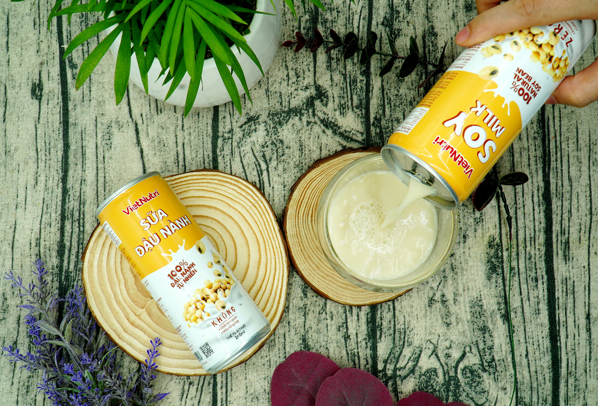 Những tác dụng tuyệt vời của sữa đậu nành với sức khỏe con người đã được tổng kết qua nhiều công trình nghiên cứu khoa học và thực tiễn sử dụng từ rất lâu đời. Tuy nhiên để có thể tự chế biến và sử dụng hàng ngày thì không phải gia đình nào cũng có thể làm được, trong khi các sản phẩm nấu thủ công, nhỏ lẻ thì rất khó kiểm soát về chất lượng và thành phần. Nắm bắt được nhu cầu ngày càng lớn các sản phẩm dinh dưỡng tiện lợi, có nguồn gốc tự nhiên và được kiểm soát ổn định về chất lượng, Dinh Dưỡng Việt đã ra đời sản phẩm Sữa đậu nành thương hiệu VietNutri đóng lon 240ml, từ dây chuyền sản xuất và nguyên liệu đầu vào đạt tiêu chuẩn vệ sinh an toàn thực phẩm, với các chỉ tiêu chất lượng được niêm yết rõ ràng, minh bạch, mang lại cho người tiêu dùng 1 lựa chọn tiện lợi và an toàn.